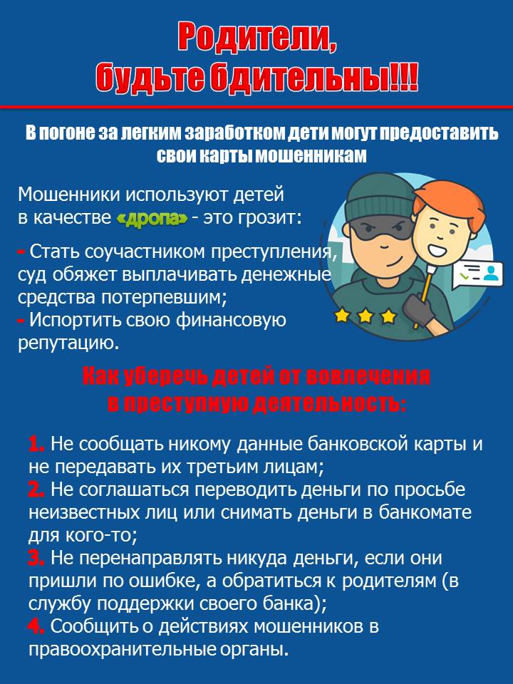 Будь бдительным! Никому не передавай свои личные данные и банковскую карту.